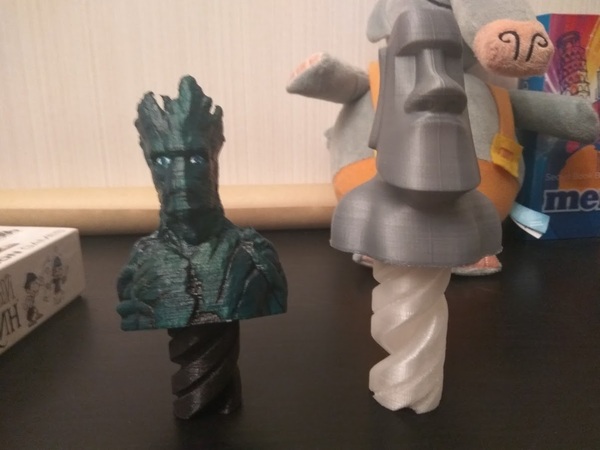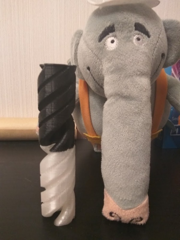 У меня же принтер всего за 200$ (+12 полукилограммовых катушек с пла-пластиком) , был приобретён в своё время на кикстартере и печатает не то чтобы отлично, но на свои деньги вполне приемлимо. Называется он M3D micro. За год пользования я его уже прилично так "ушатал", поэтому печатает он с переменным успехом, иногда выдавая вот такие просадки: