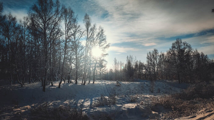 Еще немного побродил по окрестностям. Время уже ближе к вечеру, и солнце все ближе к горизонту. Идет небольшой снег, морозец приятно холодит и покалывает кожу. Вот она, настоящая русская зима!