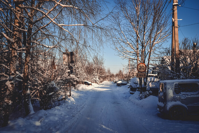 Улицы пусты. Приятно хрустит снег под ногами, осыпаются снежные шапки с еловых лап, светит солнце. Красота.