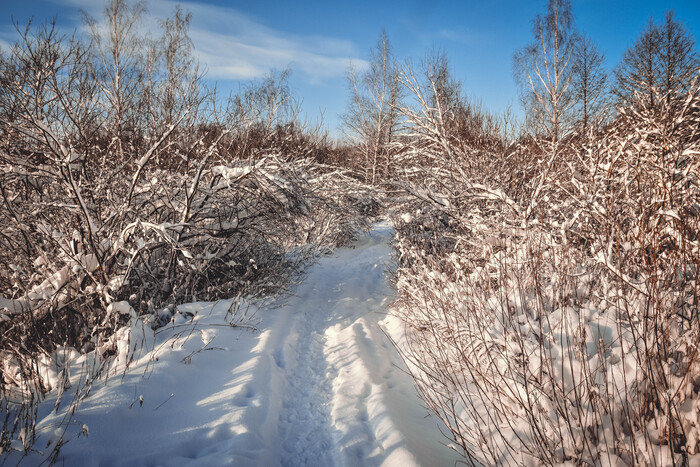 Выхожу из поселка и вступаю в лесные владения. Заснеженные деревья, сугробы по щиколотку - давненько такого не припомню в новогодние дни. То дожди, грязь и серость, то бесснежные морозы. Иду и радуюсь, как ребенок. Давно не испытывал таких ярких эмоций - с возрастом они, к сожалению, пресыщаются и притупляются. Хотя я, на самом деле, очень молод).