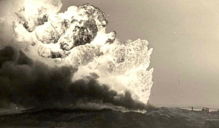 После неудачных попыток затушить фонтан водой было принято решение скважину взорвать