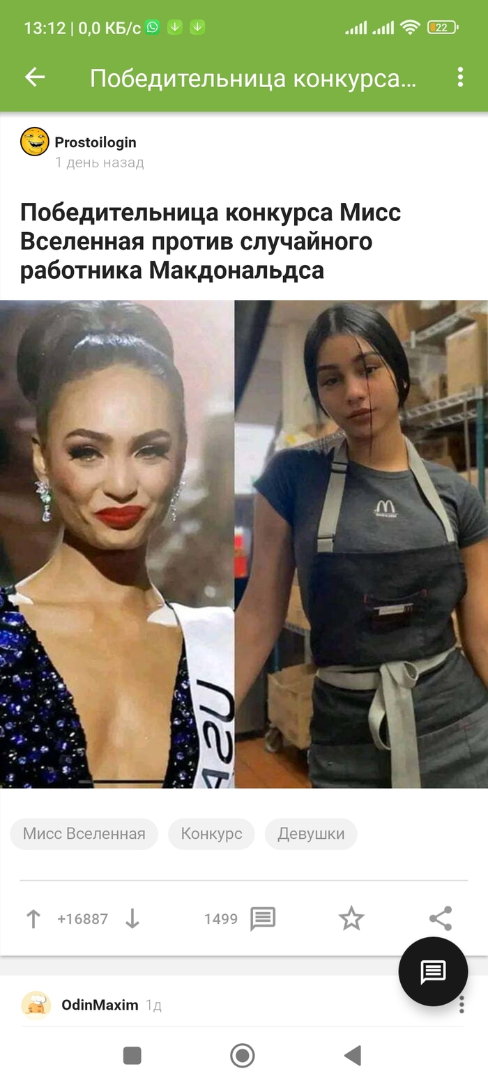 Победительница конкурса Мисс Вселенная против случайного работника Макдональдса