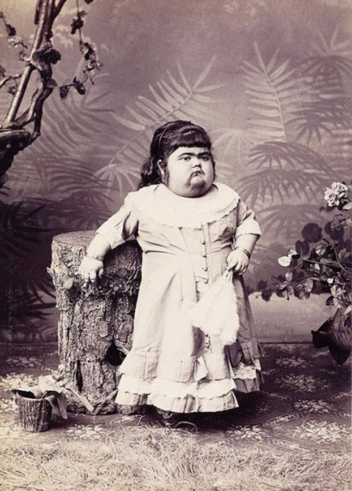 “Гном Толстушка” София Шульц была завсегдатаем в студию. В течение 1880-х годов, она начала отращивать волосы на лице, которые стали еще гуще при помощи ретуши.