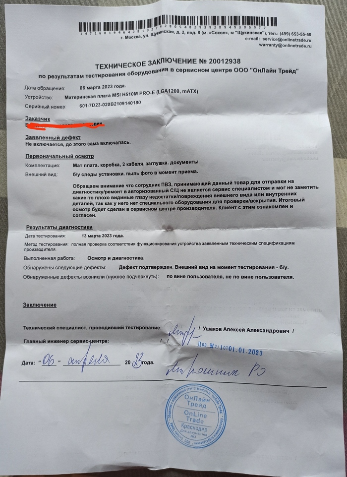 Забираю мать и мне выдают вот такой лист!Ни причина поломки,ни какие детали были заменены,в графе ,,Заключение" пустота!