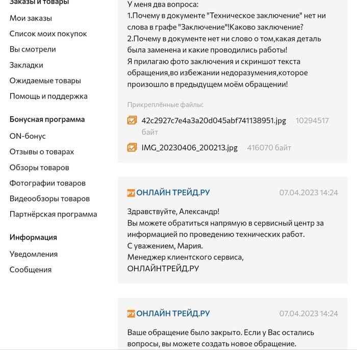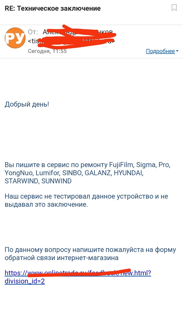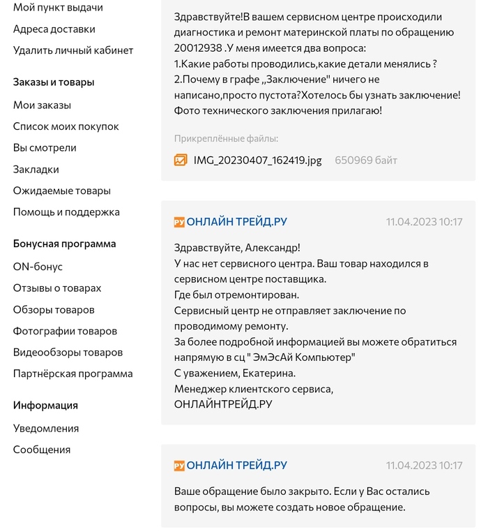 Далее я опять пишу в никакущую поддержку онлайн трейд и мне присылают вот такой ответ-по сути они сами не знают где техника ремонтируется и ремонтировалась,на отъебись выдают документы и т.д и т.б!