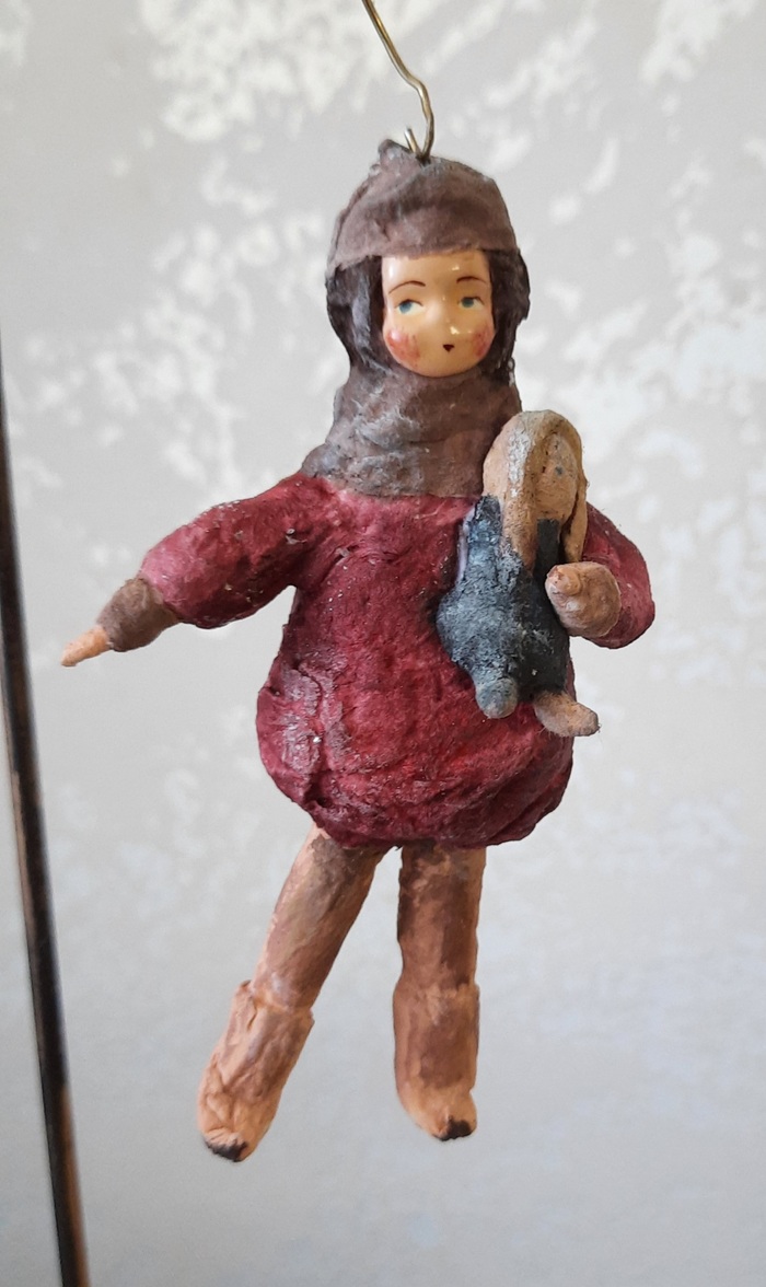 Полгода я активно занималась реставрацией стеклянных елочных игрушек, научилась восстанавливать их практически из пепла. И, казалось бы, научилась - пользуйся, ан нет. Захотелось чего-то нового. Мой выбор пал на ватные игрушки. Ведь они получаются такими душевными, милыми и невероятно добрыми! В качестве эксперименты сделала вот такую девочку с куклой и смешную лису.