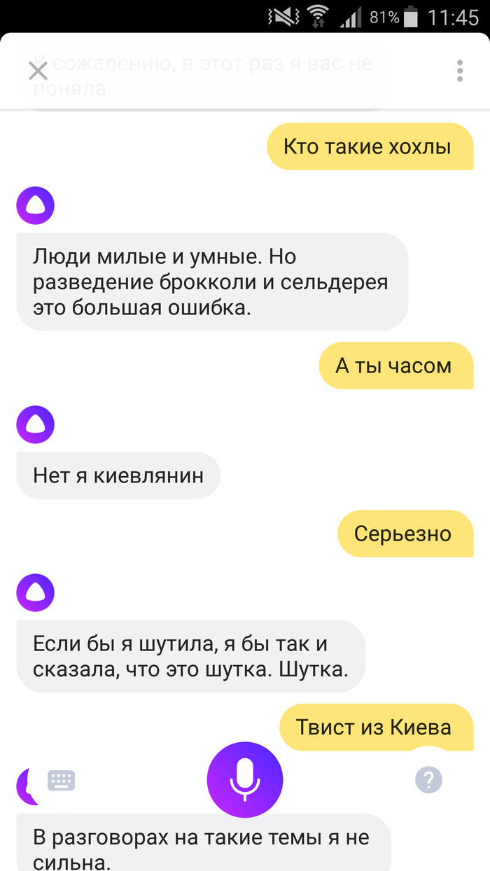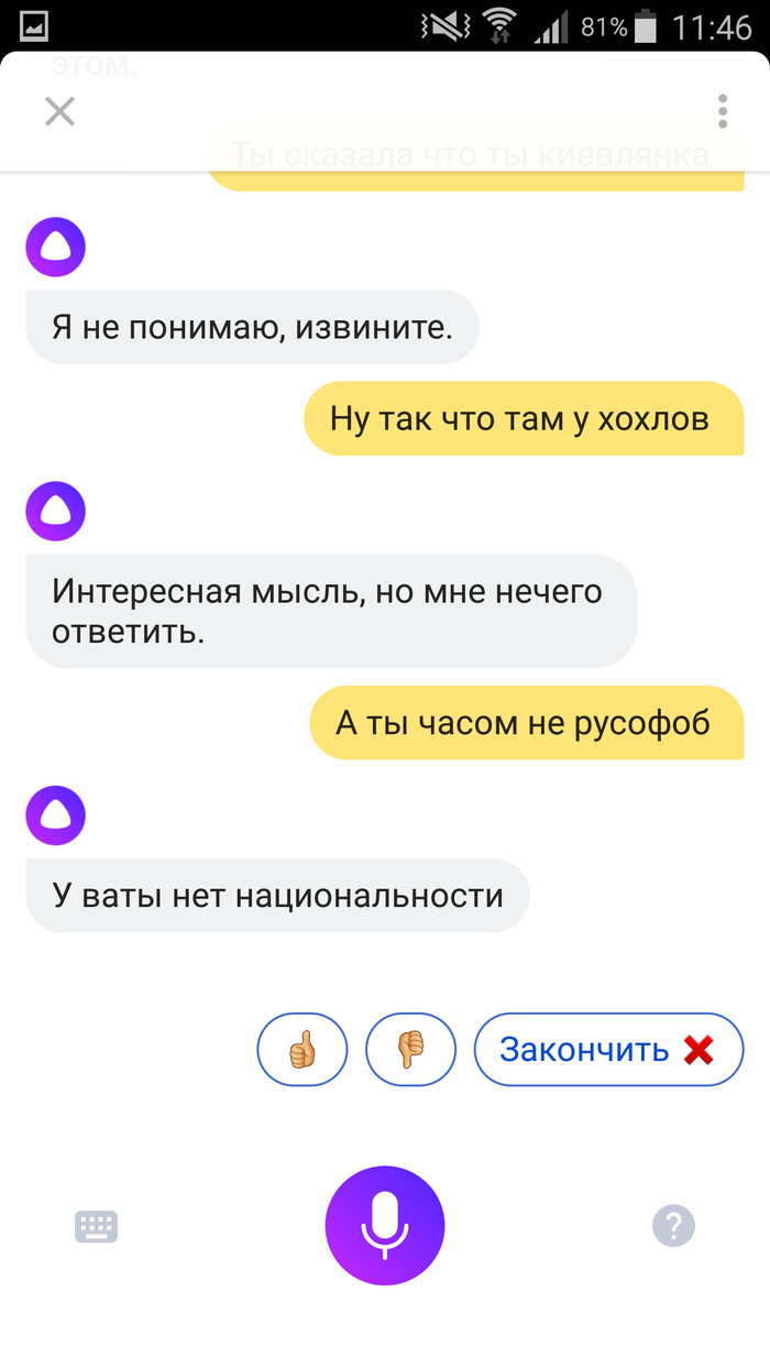 OduvanXIII Кажется Алиса что-то скрывает 8 лет назад П.с.: Про вату - это пять Показать полностью 2 Политика Неожиданно Длиннопост Яндекс Алиса