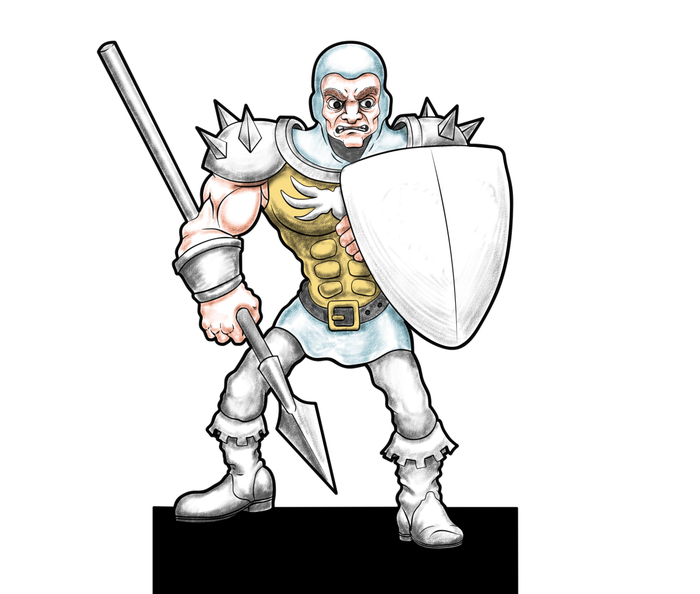 День двенадцатый. Этот рубака мне тоже нравится, тут я решил использовать простые геометрические фигуры, чтобы потренироваться с тенями.