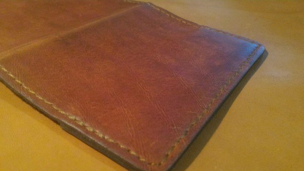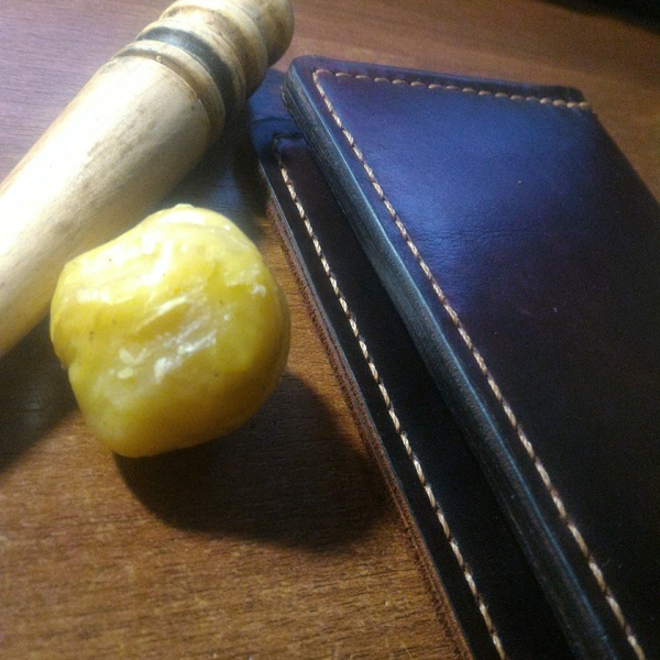 Еще решил попробовать обрабатывать урез исключительно воском. Получается долго, но красиво.