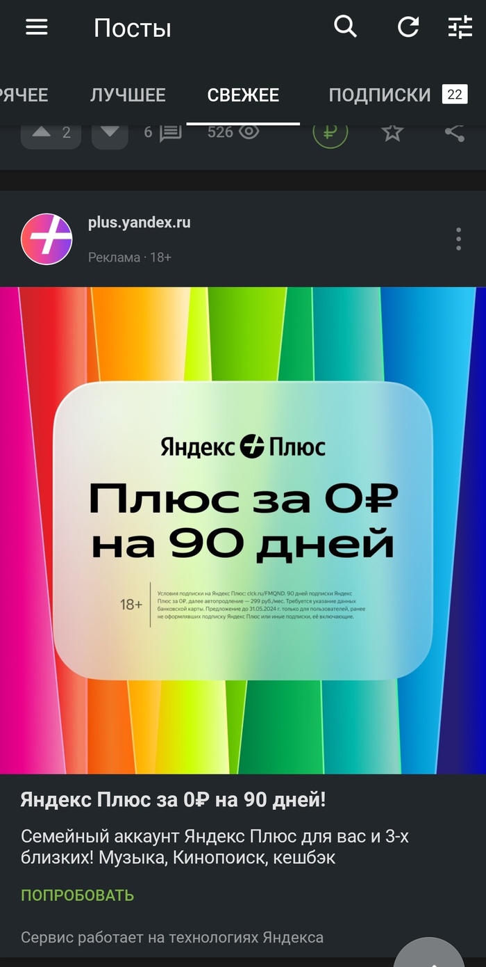 Вот такая реклама Яндекс плюса заполонила ленту на Пикабу