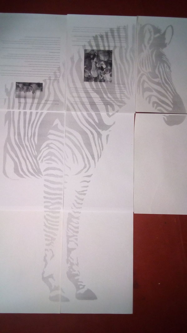 Далее следовала распечатка в виде плаката на принтере. Сначала сделала макет 3х3, но поняла, что этот размер мал, в итоге распечатала 4х4, предварительно убавив непрозрачность. Фото процесса сохранилось только 3х3, т.к. мой тапок с камерой куда-то пропал.