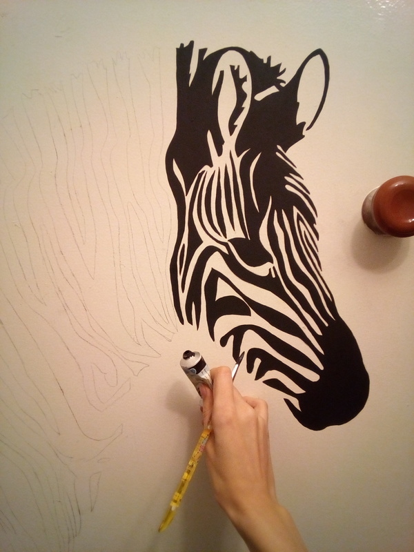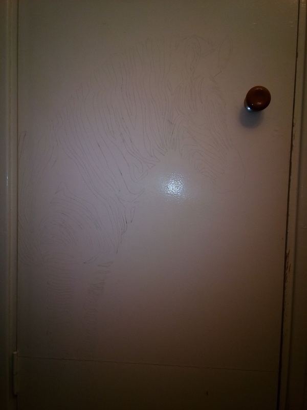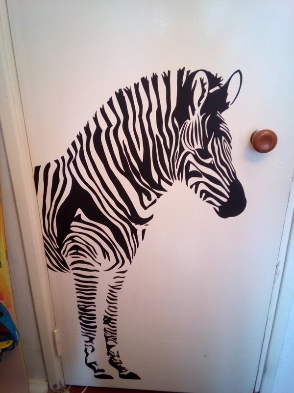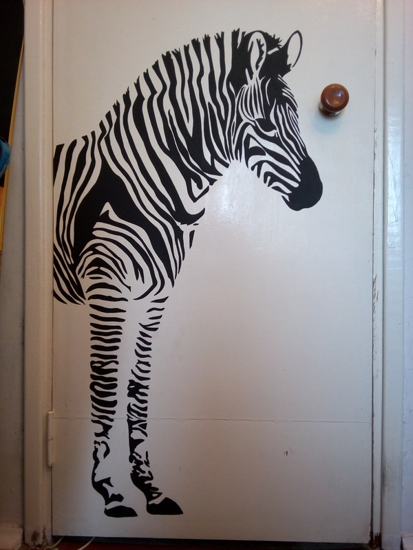 Вот такую зебру по имени Гусь давно мечтала воплотить на своей двери, чтобы лицезреть её с кровати и наблюдать как она меня манит за пределы комнаты.