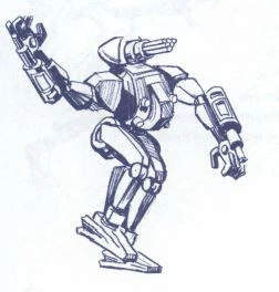 Осторожно выглянув из-за колонны, я увидел его фигуру, стоявшую ко мне боком. Его красный глаз-камера бесстрастно сканировал пространство прямо перед собой. Он сделал ещё один шаг, выводя всю свою грубую, асимметричную форму на открытое место.