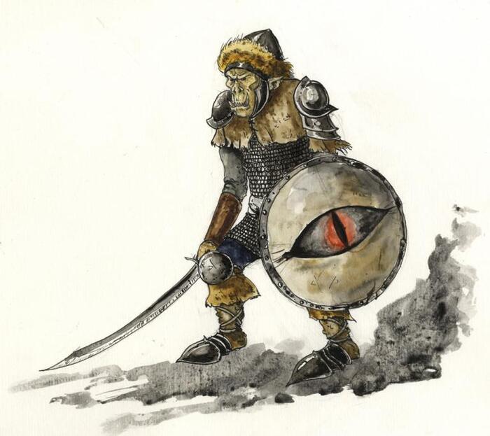 Единственное изображение Толкинского монголоидного орка, что мне удалось найти. Художник - Антуан Гледель.