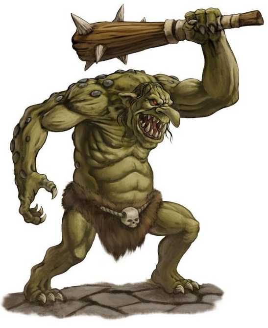 Троллей представляли уродливыми великанами в 2-4 человеческих роста, с большим носом и иногда - с несколькими головами. Они были древними как горы и невероятно сильными, но медлительными и довольно глупыми. Их можно было встретить в глухом лесу или в горах.