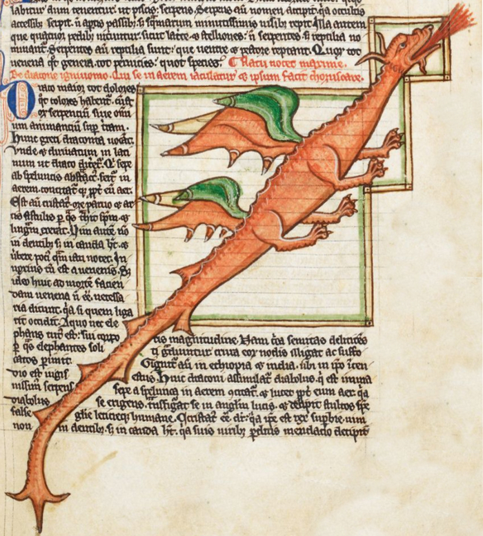 Старейшее изображение классического дракона в европейском манускрипте. ~1260 г.