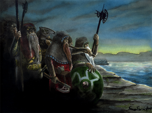 "...гонцы Бэрда встретили короля, когда тот со множеством копьеносцев и лучников двигался в их сторону. Над ними тучей летели вороны, думавшие, что надвигается война, какой в здешних краях не бывало вот уже много-много лет.