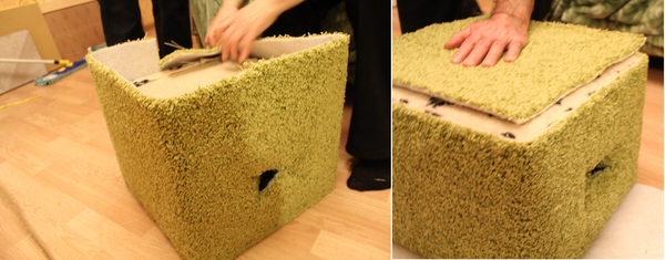 Да ладно, это не все. Обиваем ковролином нижний леопардовый дом. А то как то хламурненько.
