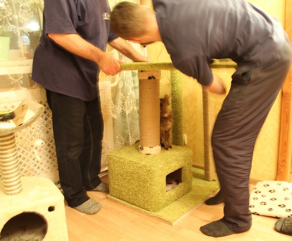 Стали мы тут счастливыми обладателями аж двух кошек. Не, сначала взяли одну красавицу - беленькую, пушистую, нарекли Симкой. Но что-то девчуля заскучала, особенно когда дома весь день одна сидит. Маман решилась на вторую. Хотели лысую взять, но слишком уж экстравагантно выглядит... И вот взялась к нам - Лизон. Тоже страшная красотка) Носастая такая. У каждой было по простому, недорогому и уж больно на их вкус скучному домику. На семейном совете решили выделить кошкам угол и сделать что-то поинтереснее.