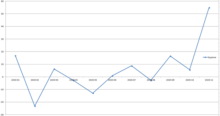 Избыточная смертность за 2020 ( Владимировская и Ивановская области )