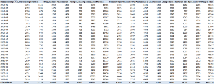 ЗАГСы несколько регионов выложили данные по декабрю 2020. Алтайский край, Краснодарский край, Омская область, Томская область, Тульская область, Костромская область.