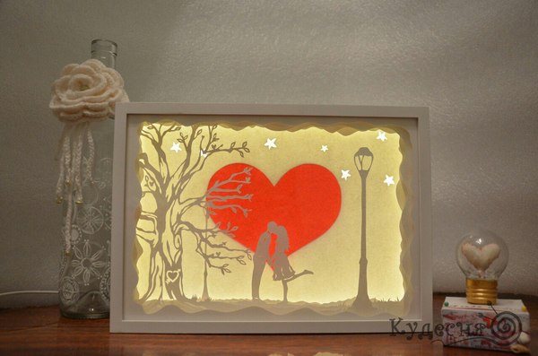 На общей волне популярности на Пикабу лайтбоксов своими руками и я сделал подарок своей любимой жене. Фото процесса нет, т.к. делалось в сжатые сроки, да и много уже на Пикабу инструкций на эту тему.