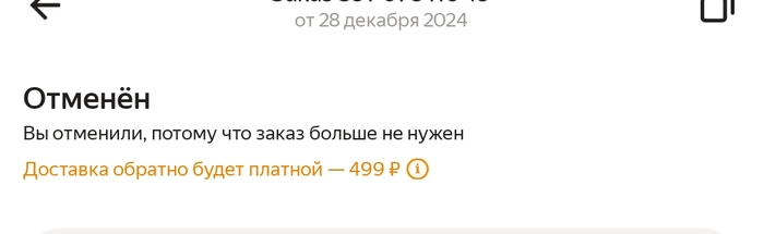 Расстроился и отказался от заказа. А через 5 минут в приложении пришло, что заказ отменён и списано 499 рублей за возврат товара. Отзывы на продавца и товар появились недавно, а товар снят с продажи.