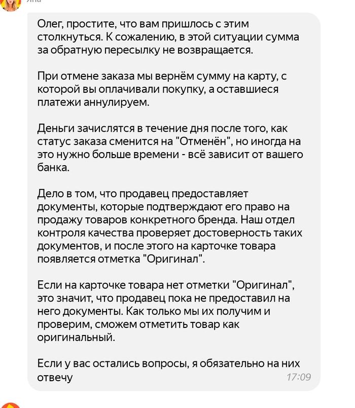 UPD. Поддержка прислала промокод, на стоимость возврата товара.