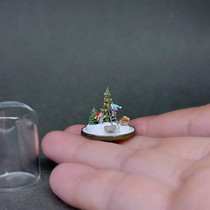Санки, ящик с мандаринами и игрушками, лестница из листовой балзы 1 мм.(но и она оказалась толстой для моих нужд, поэтому для уменьшения толщины пришлось просто "прокатать" кусочки бальзы карандашом, как скалкой)