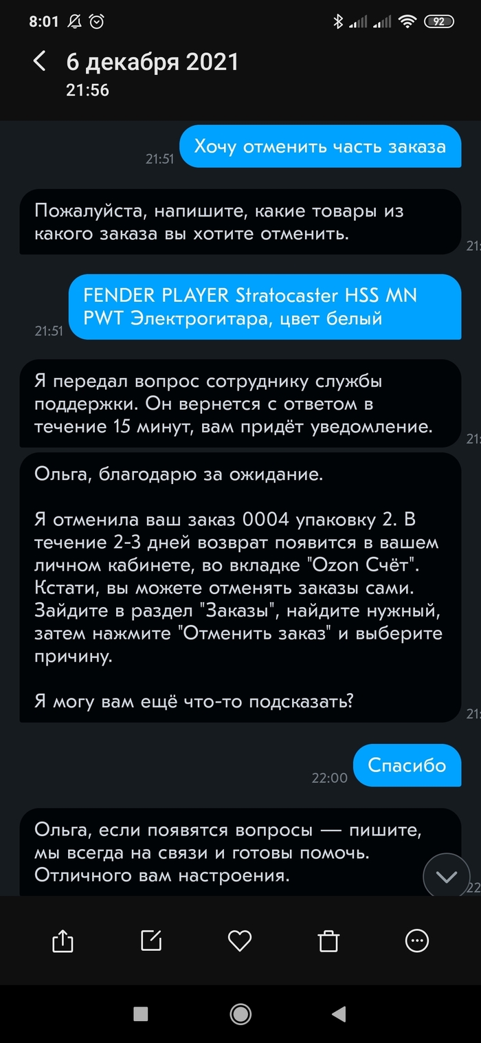 До этого момента проблем с озоном ни у меня, ни у знакомых не было. Поэтому решила заказать гитару там