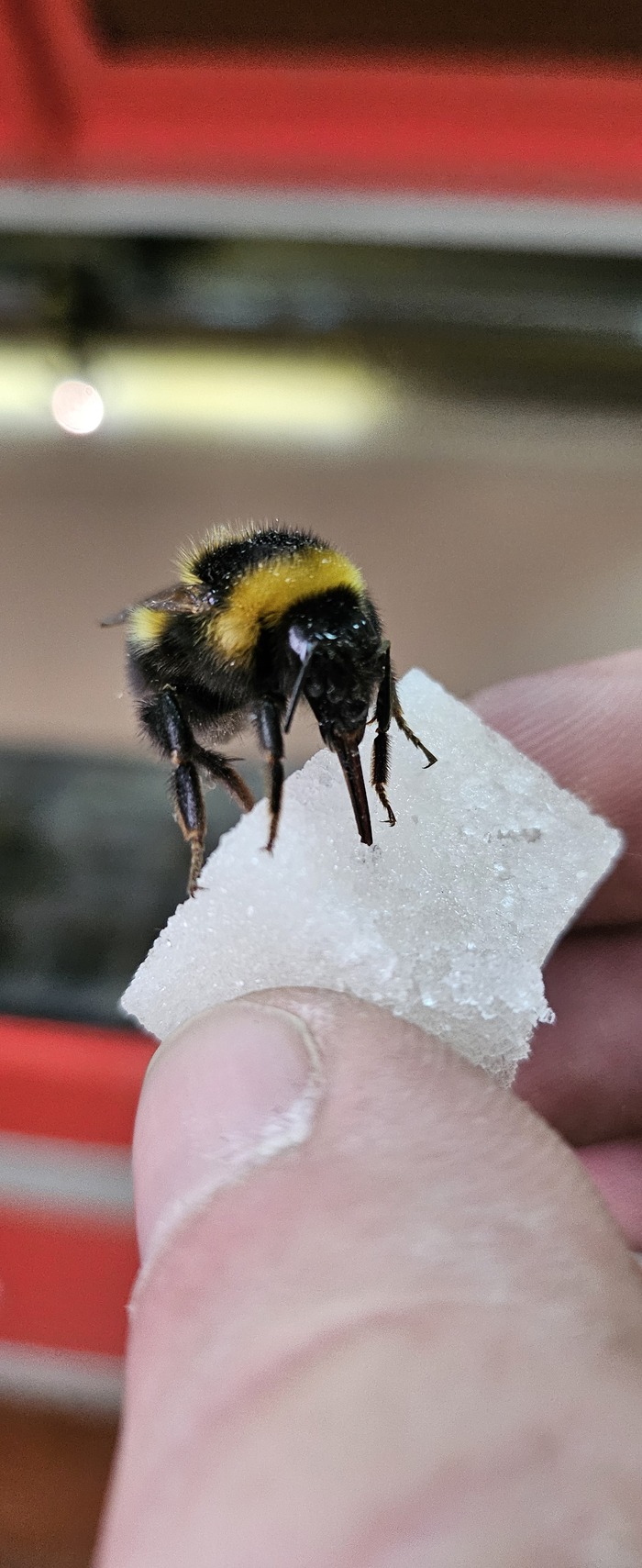 Шмель накормлен и отпущен в естественную сруду обитания.