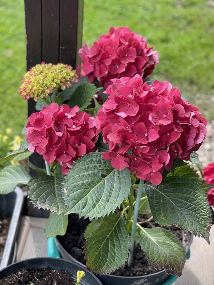 У каждого вазона - надпись с названиями сорта и данными того, кто экспонирует.