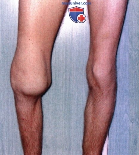 На фото - гемартроз, то есть накопление крови в суставе. Это постоянная проблема пациентов с гемофилией. Такие вещи могут происходить как спонтанно, так и из-за травмы.