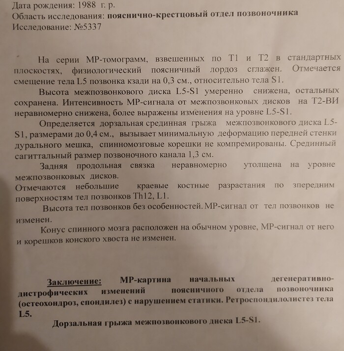 Просьба о помощи, грыжа в пояснице L5-S1