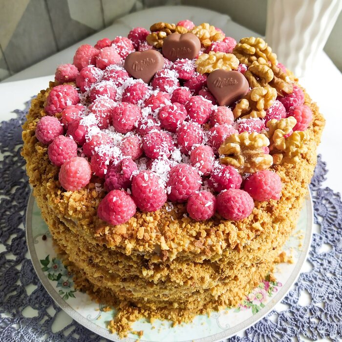 Шли годы, пеклись торты... Я по-прежнему делала их вкусными. Внешний вид даже становился чуть лучше. Здесь я стала хотя бы обрезать коржи по тарелке)) Правда, перед выпечкой, а не после, как надо.