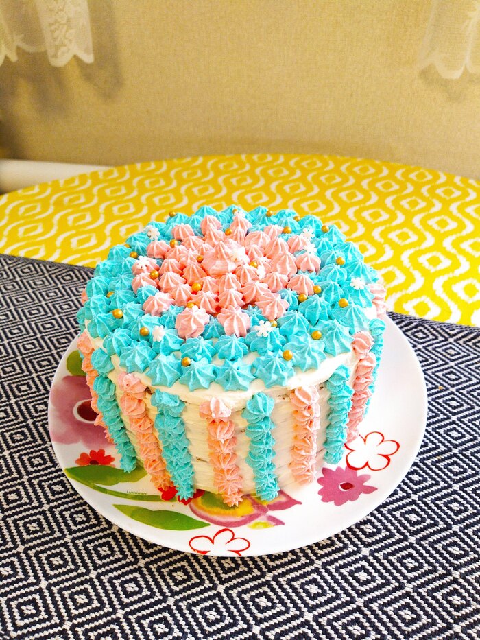 А здесь уже освоила обмазку боков кремом и посыпку. Плюс появилась претензия на какой-никакой декор.