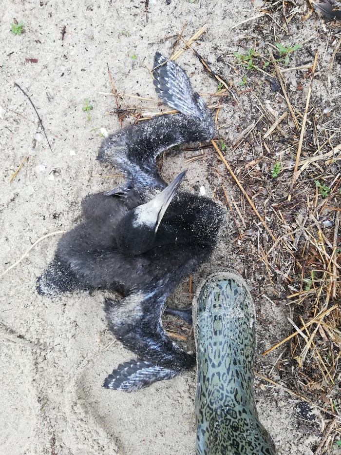 Дождь идёт, не переставая. Резиновые сапоги скользят по грязи. Сверху постоянный артобстрел из полупереваренной рыбы и экскрементов. Моя задача - найти низко расположенные гнезда, взять из них птенцов, окольцевать и отобрать кровь из вены на крыле.