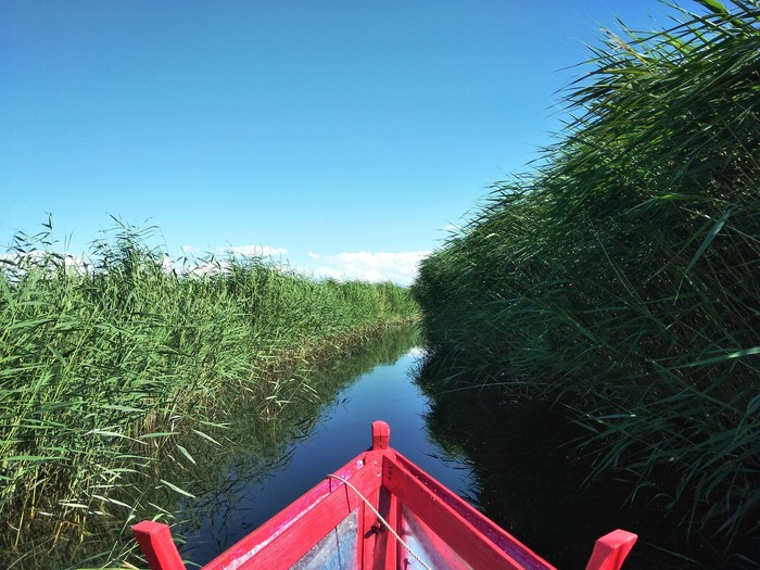 - либо 40 минут грести на лодочке с веслами, сначала по гирлу, а затем - по ерику... Первое время я вообще не знала с какой стороны за весла браться, а сейчас уже - и в дождь, и в снег - гребу да гребу))