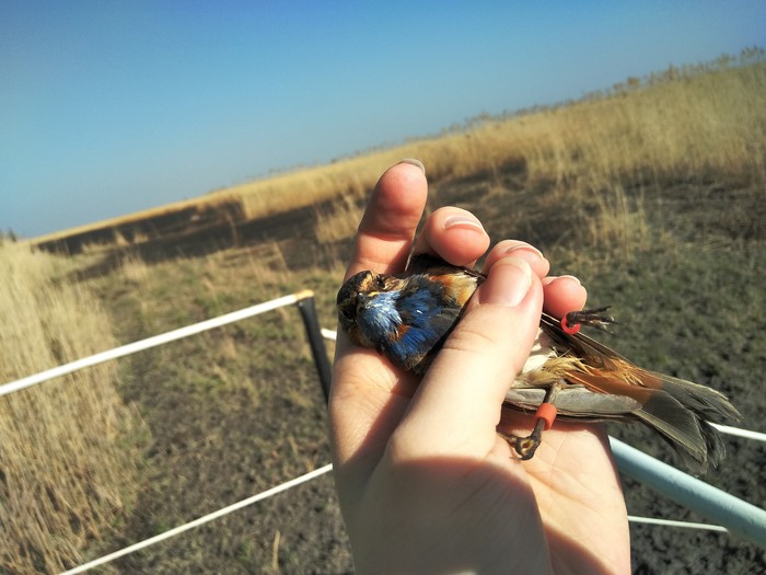 Сама работа на стационаре не составляла особой сложности. В первый год было особенно интересно - смотреть, кто, куда и когда полетел. Составляли общий список встреченных видов. Дополнительно у нас стоят орнитологические сети, в которые регулярно ловились воробьиные, а я их полностью измеряла, цепляла цветное кольцо на лапку и выпускала :)