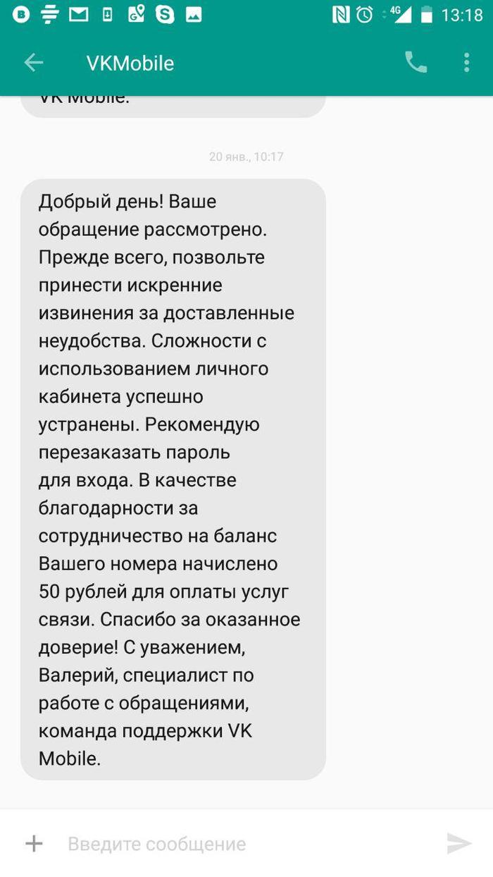 Между делом один из умников из техподдержки решил что всё просто, ведь пользователь не особо умён и не умеет пользоваться телефоном. Он отправил мне следующее сообщение: