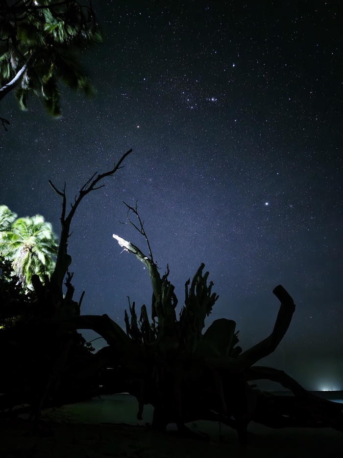 Одиночный кадр неба - 1600 ISO, 30 сек выдержка. Фон - 1600 ISO, 1 минута (без ведения)