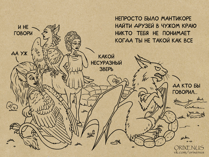 За Скорпиона (ноябрь) у меня традиционно отдувается мантикора. В чём суть истории? В том, что мантикора - не греческое чудовище, хотя грекам она была известна и даже описана как существо то ли персидской, то ли индийской мифологии.