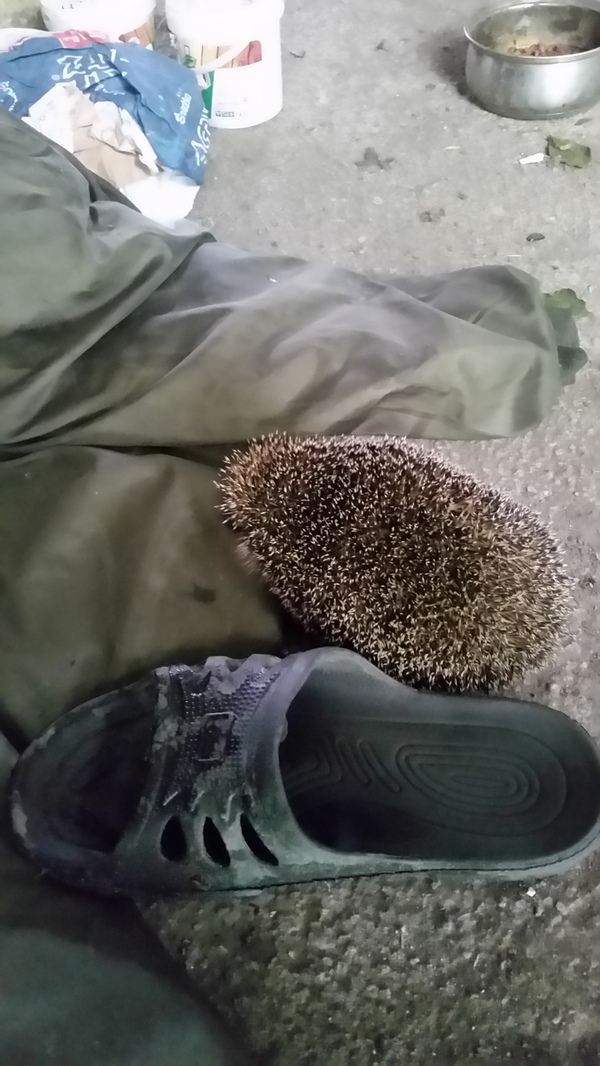 39 OrkWarlord В гости ежик зашел. 8 лет назад В подсобке хозяйничал,котов объедал. Накормлен,затискан,отпущен. Тапок 48 размера Показать полностью 2 [моё] Ёжик Гости Пирожок с колючками Длиннопост