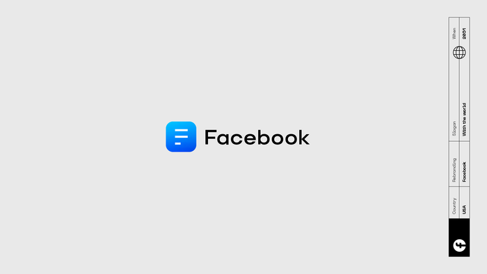 Facebook. 2051 год. Уход от строчной «f» к прописной «F», подчёркивая слово «book»
