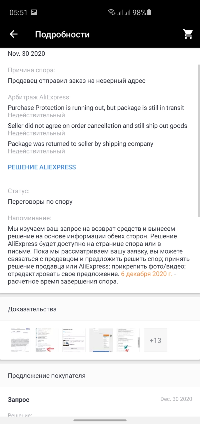 Прикрепляет трек номер, который бьётся под весом 10 грамм, на мой индекс но не на мое имя , адресат получения вообще левый человек, по этому поводу я открываю спор ибо 10 грамм и адресат вообще другой, ну очевидно же что мошенник. Плюс появились отзывы у него впечатляющие. До определенного момента спор висел как будто я выйграл , но позже сменился что я проиграл с множеством причин) все что они увидели это что товар был в месте вручения ) , а то что я даже не был на почте и товар сам по себе уехал дальше ) смешно