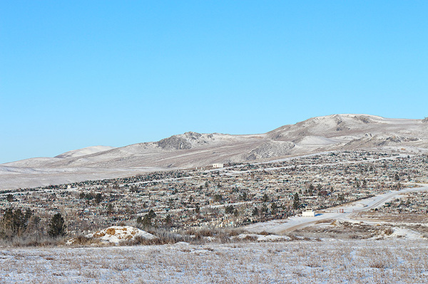 Неофициально я еду на кладбище у подножия сопки. Кладбище растет сразу во все стороны. Оно такое большое, что не влезает ни в один объектив. На 30-градусном морозе под ослепительным солнцем я пытаюсь сфотографировать место, где похоронены 30 тысяч человек — больше половины от нынешнего населения города.