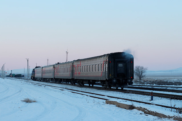 Поезд Чита–Краснокаменск приезжает на рассвете. Четыре полупустых вагона тащит тепловоз: железную дорогу здесь еще не электрифицировали.
