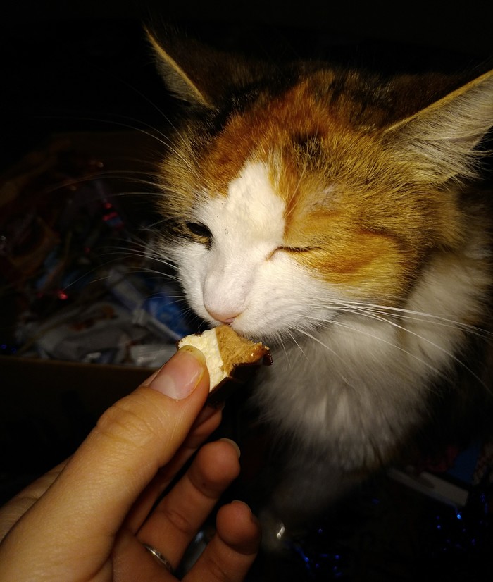 Стойте-ка, кажется, наша инспекция зашла слишком далеко! Кото-инспектор даже испробовал на себе конфетку. Кажется, понравилось! Нам с семьёй точно уж понравилось :)