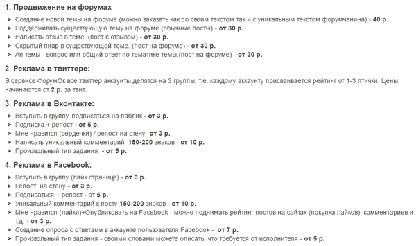 Сайт который сегодня я хочу осветить - ФорумОК. Позиционирует себя как биржа постинга для продвижения товаров и услуг в социальных сервисах РУнета. Иными словами зарабатывать мы будем на размещении рекламных постов в социальных сетях, либо ставить лайк, подписываться и оставлять комментарии.