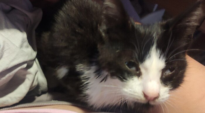 Но вроде ничего критического нет, котенок в меру активен для своего тощего состояния. Аппетит есть.
